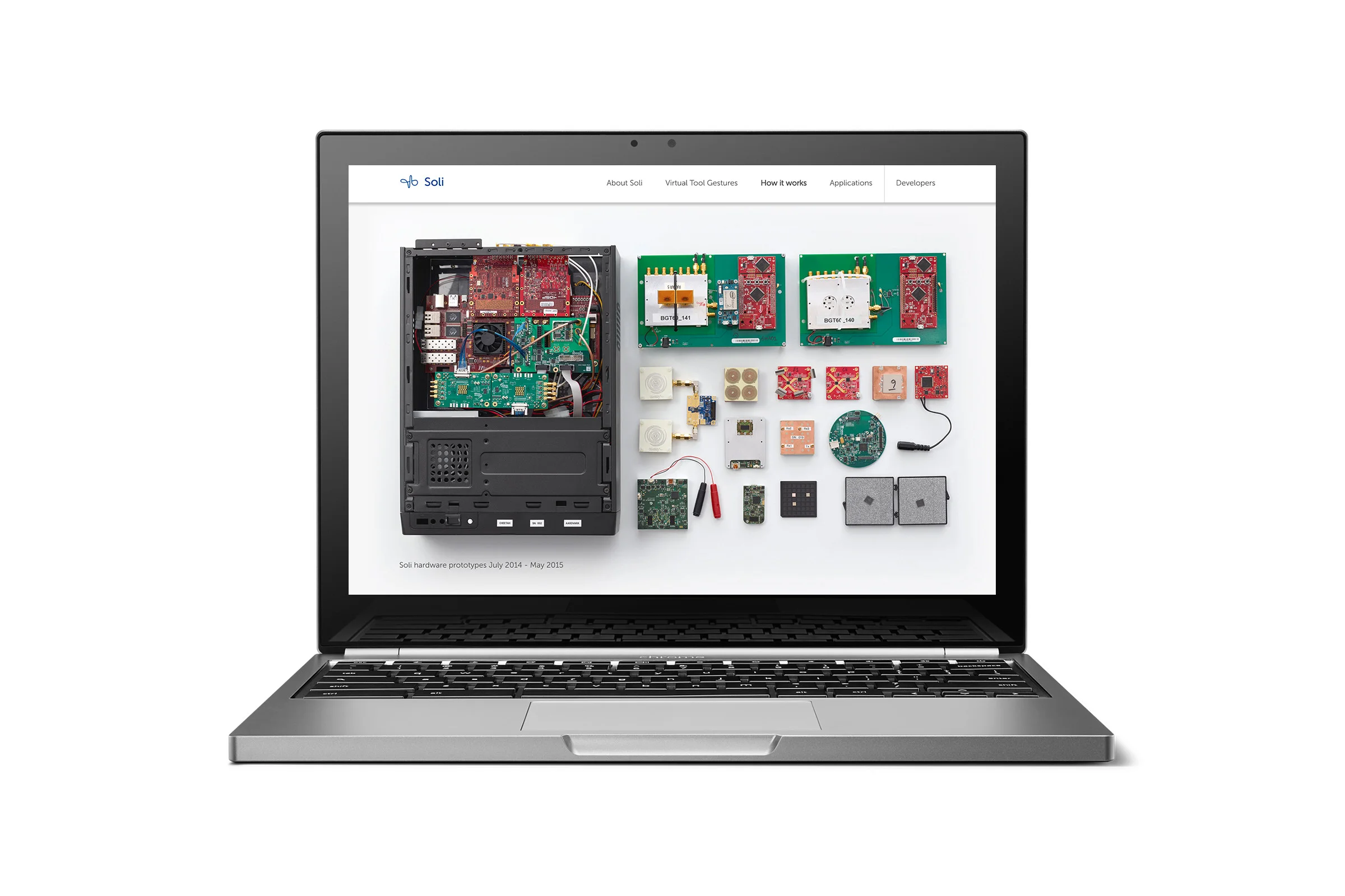 Soli is a new technology that uses a miniature radar chip to utilize touch-less micro-gesture interactions. In 2015 I was tasked with helping the Soli team at Google's Advance Technologies and Projects group to design their first marketing website to be launched in tandem with their major announcement at I/O '15.